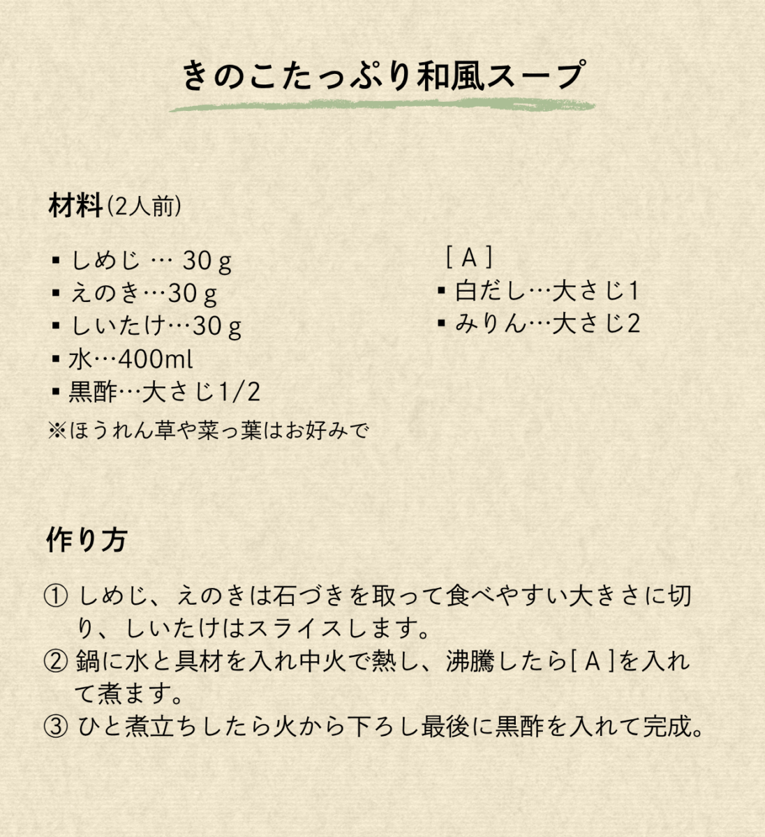 きのこたっぷり和風スープ | 福山黒酢株式会社